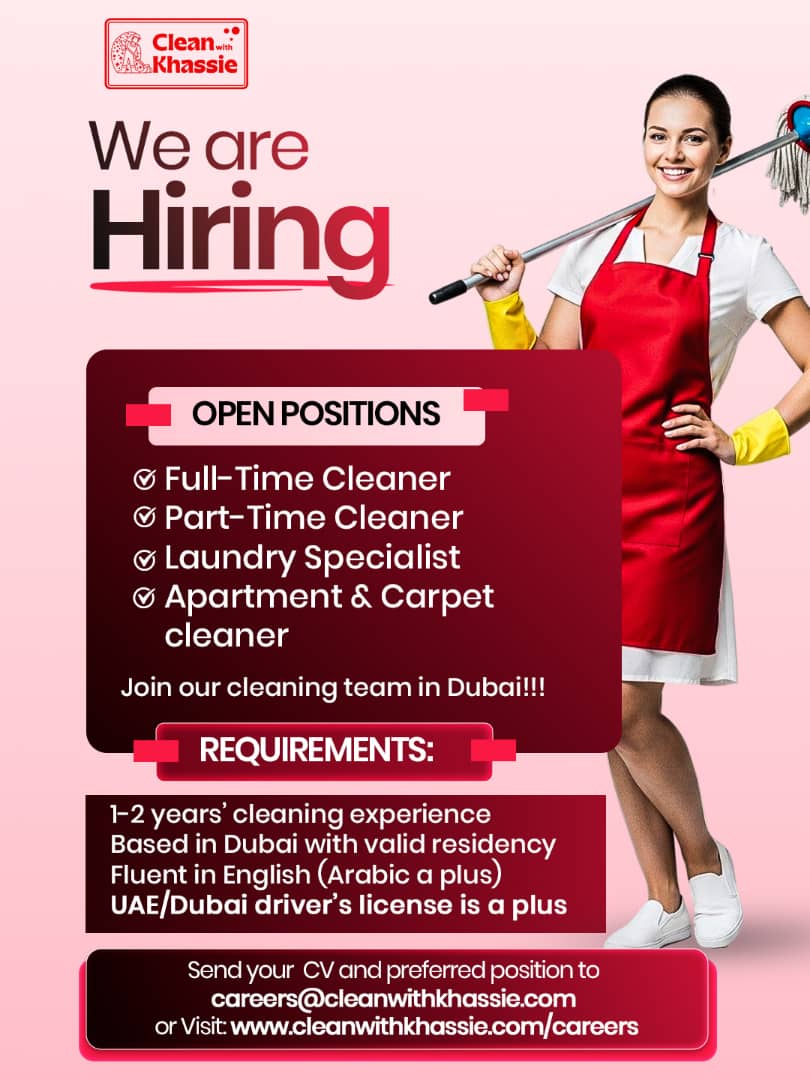Read MoreLooking for flexible work hours and a supportive work environment? Clean With Khassie is hiring part-time cleaners in Dubai! 🔹